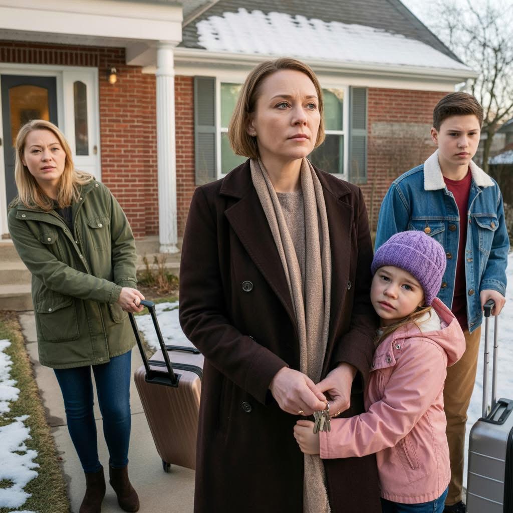 She didn’t pound on the wood or make a scene. She just stood there on my porch, thinner than I remembered, her eyes worn down like she’d been driving for days without stopping. The kids stayed close behind her—Ethan at eight, Lily at six, and little Marcus just four—their hands clasped together in a chain of siblings who’d learned to hold onto each other when everything else felt uncertain. Their boots left wet half-moons on my entry rug as they stepped inside, and I remember thinking how small those footprints looked, how temporary they seemed, like they might evaporate if I looked away too long.
